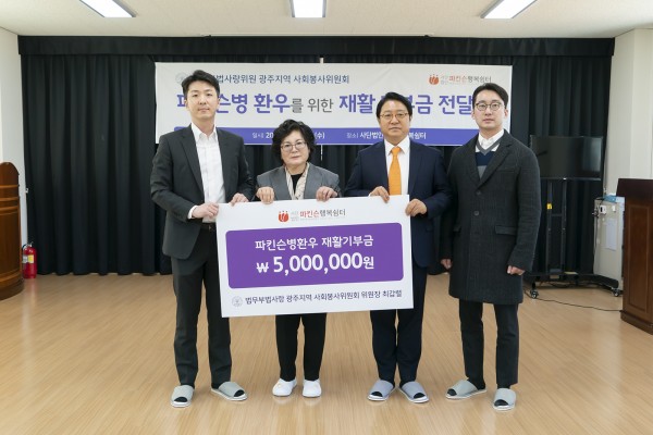 법무부법사랑 광주지역 사회봉사위원회 최갑렬회장님께서 500만원을 기부하여 주셨습니다.