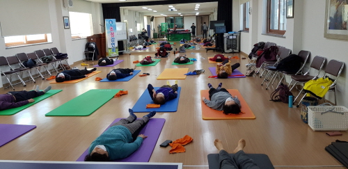 코로나19 사회적거리두기가 1.5단계로 하향조정되어 쉼터의 요가프로그램이 재개되었습니다.