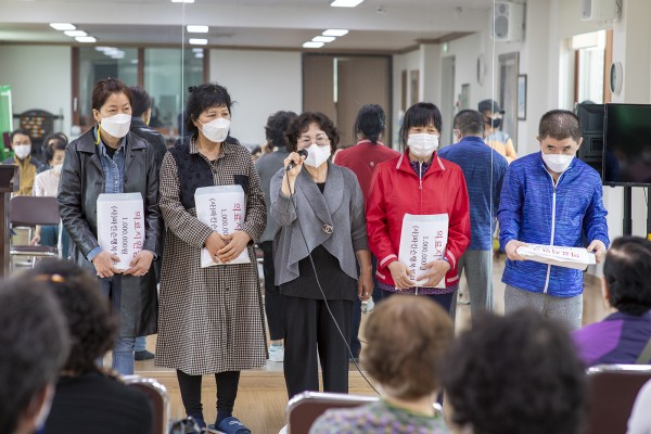 4월15일 행복쉼터 강당에서 쉼터의 환우들과 함께 전달식을 하였습니다.