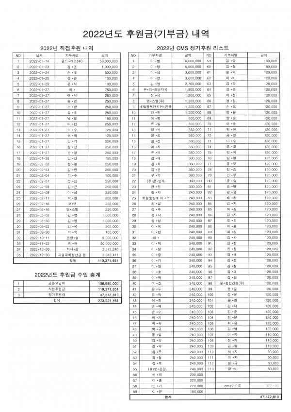 2022년도 기부금 내역(공동모금회+직접후원금+cms회비)