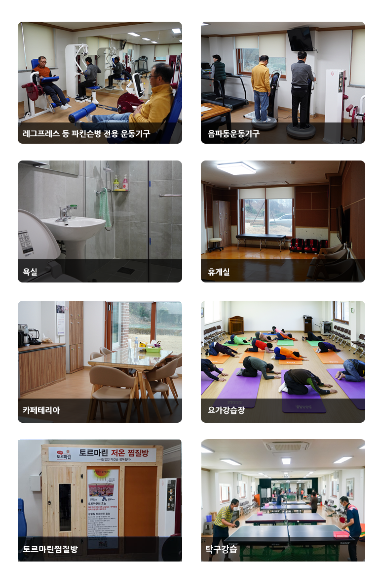 파킨슨 행복쉼터는 파킨슨병 환우들의 재활 및 교류를 위한 곳으로 파킨슨병 환우는 행복쉼터에서 실시하는 요가, 댄스, 노래교실, 파크골프 등 프로그램 및 재활운동시설을 무료로 이용할 수 있습니다.